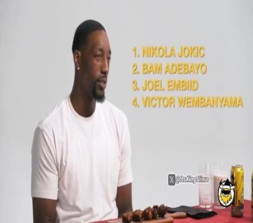 这四位球员分别是约基奇、恩比德、文班亚马和阿德巴约自己,阿德巴约给出的顺序是:约基奇、自己、恩比德、文班亚马。
