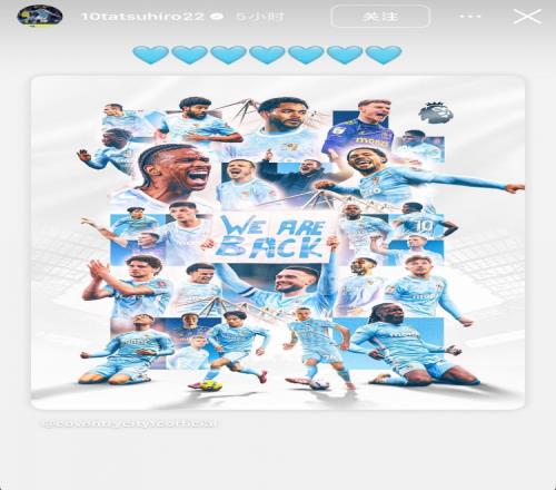 赛后效力考文垂的29岁日本中场坂元达裕更新社媒,晒出了考文垂庆祝重返英超联赛的海报。