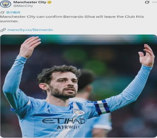 官方:曼城宣布贝尔纳多-席尔瓦将在今夏离队。